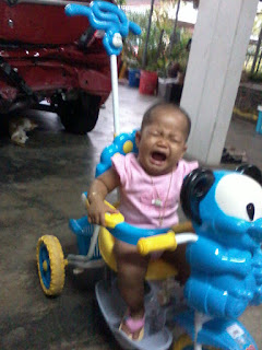 memandangkan Nur Afnan Nisrina dah pandai duduk, ai dah pon belikan basikal baru untuk dia. rezeki anak tidak pernah putus. dari berdukung nak bila nak bawa pusing2 time petang, baiklah belikan basikal. dia pun selesa kita pon tak penat. badannya nampak saja kecil tapi bila dah didukung barulah tau.. :)